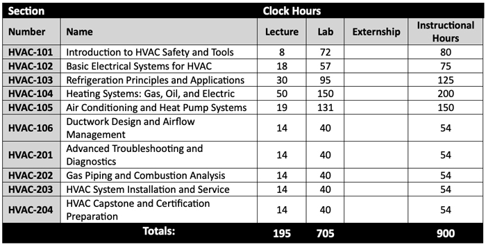 The program combines classroom instruction, hands-on lab experiences, and real-world training in HVAC service and installation. Graduates will be prepared to enter the workforce as HVAC technicians, installers, or service professionals, with the skills and credentials needed to advance in the industry. The curriculum is designed to align with industry demands, ensuring that students are equipped with up-to-date knowledge and practical expertise.